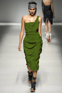 Strong and bright hues with high value and intensity dominate the new collection. By using the analogous color scheme in one piece of fashion in order to retain softening similarities. As a result, increasing the harmony of the whole collection especially strike a balance to the vigorous hues. Besides, by using monochromatic color scheme that contains only value and intensity variation of one hue, the effect is never dissappointed and rather going well with Vivienne westwood unique style and design.